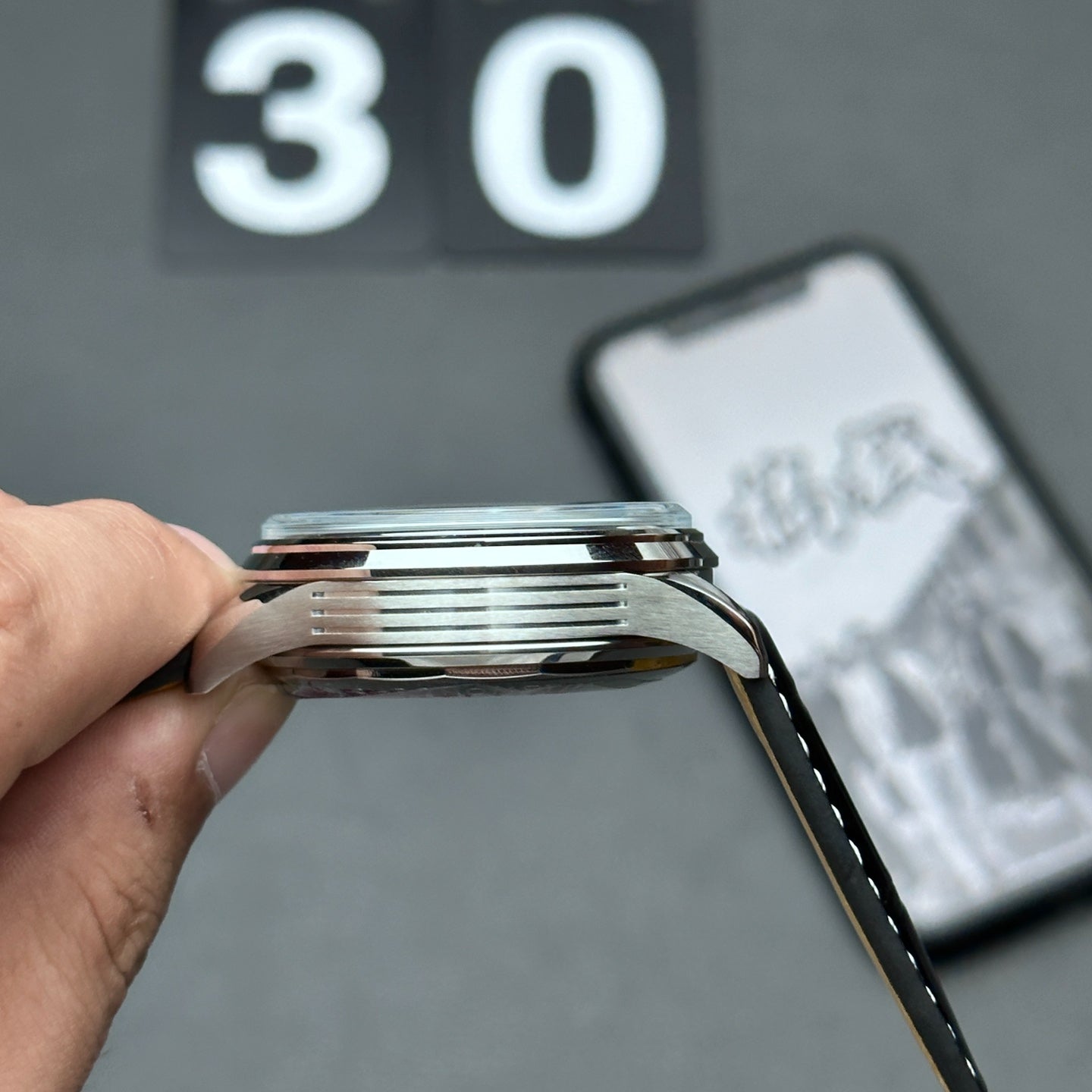 Chronograph - Grey - Black Leather - Automatic - 42mm