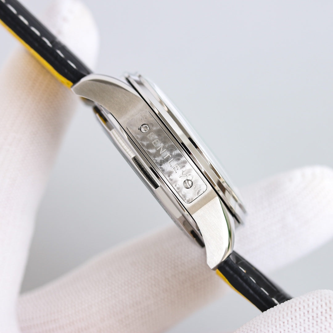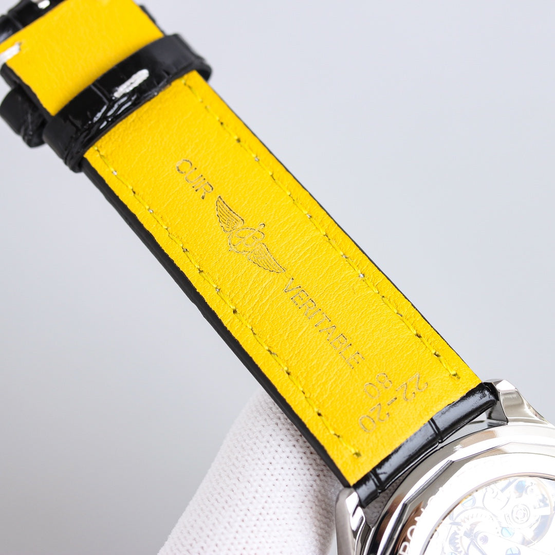 Chronograph -Silver Black - Black Leather - Automatic - 42mm